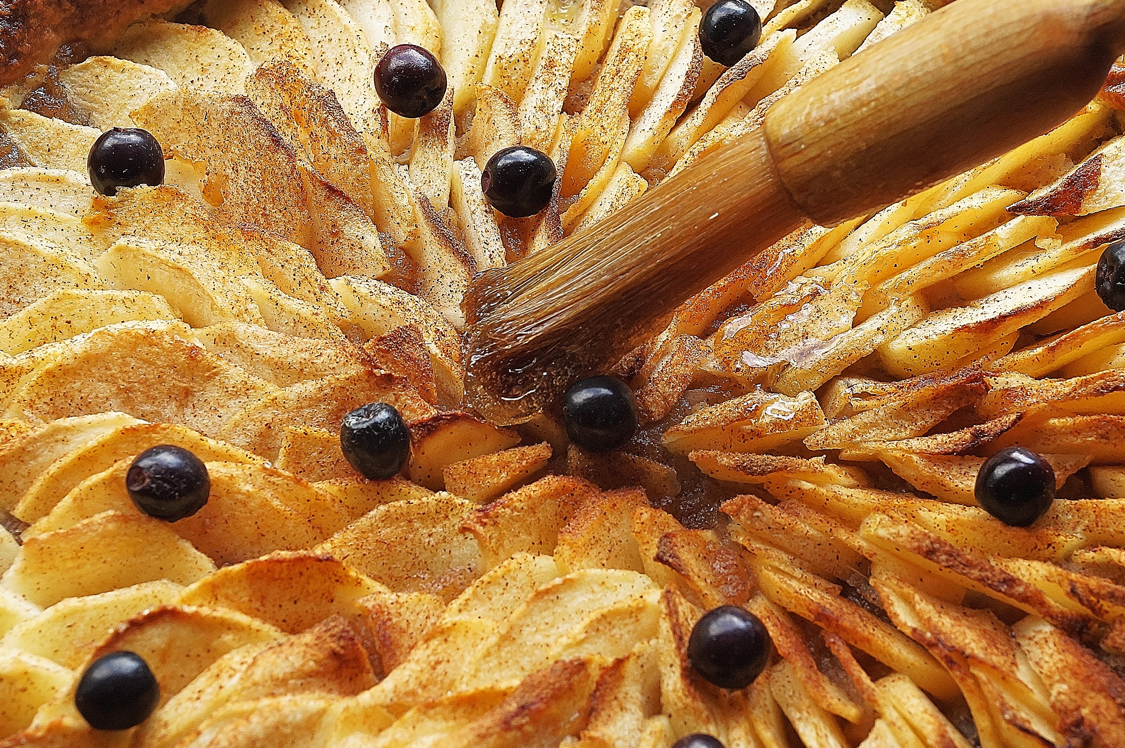 Almost ready, the final touch is some apple jelly from the Burren; I heated it up in a pan with a bit of water and with a pastry brush, well, started glazing away!